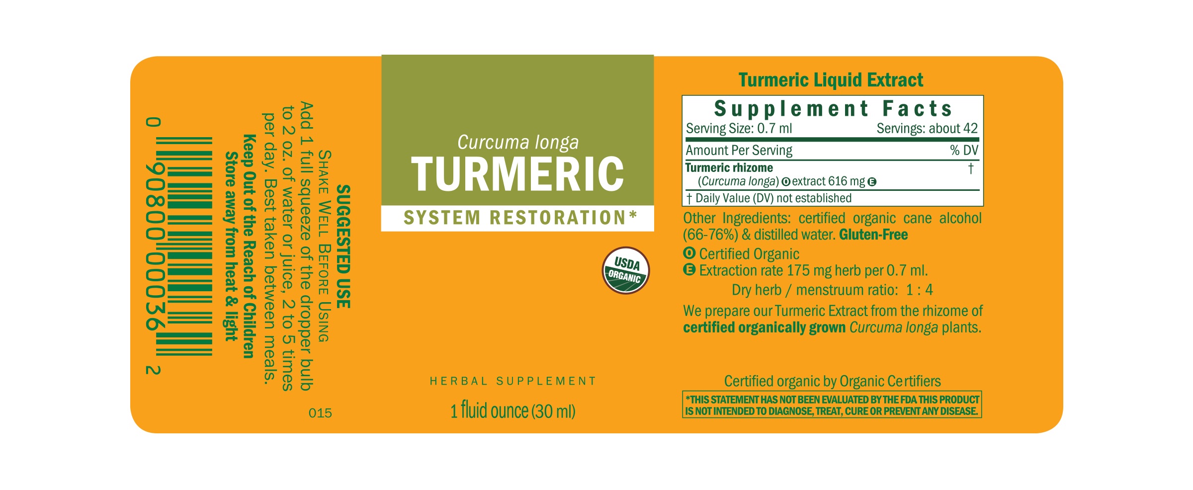Our Turmeric is prepared from the fully mature rhizome of Certified Organic Curcuma longa plants. We directly import whole Turmeric fingers or sliced rhizome from its native regions. We mill the rhizomes at the last moment before extraction to retain the herb’s characteristic taste and aroma. This herb has a long history in Ayurveda and Traditional Chinese Herbalism. Turmeric is used in Ayurveda for skin, digestive and liver support.*